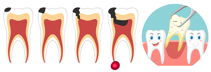 כאב שיניים (בתחילה בזמן אכילה ו/או שתייה, בהמשך ספונטני)